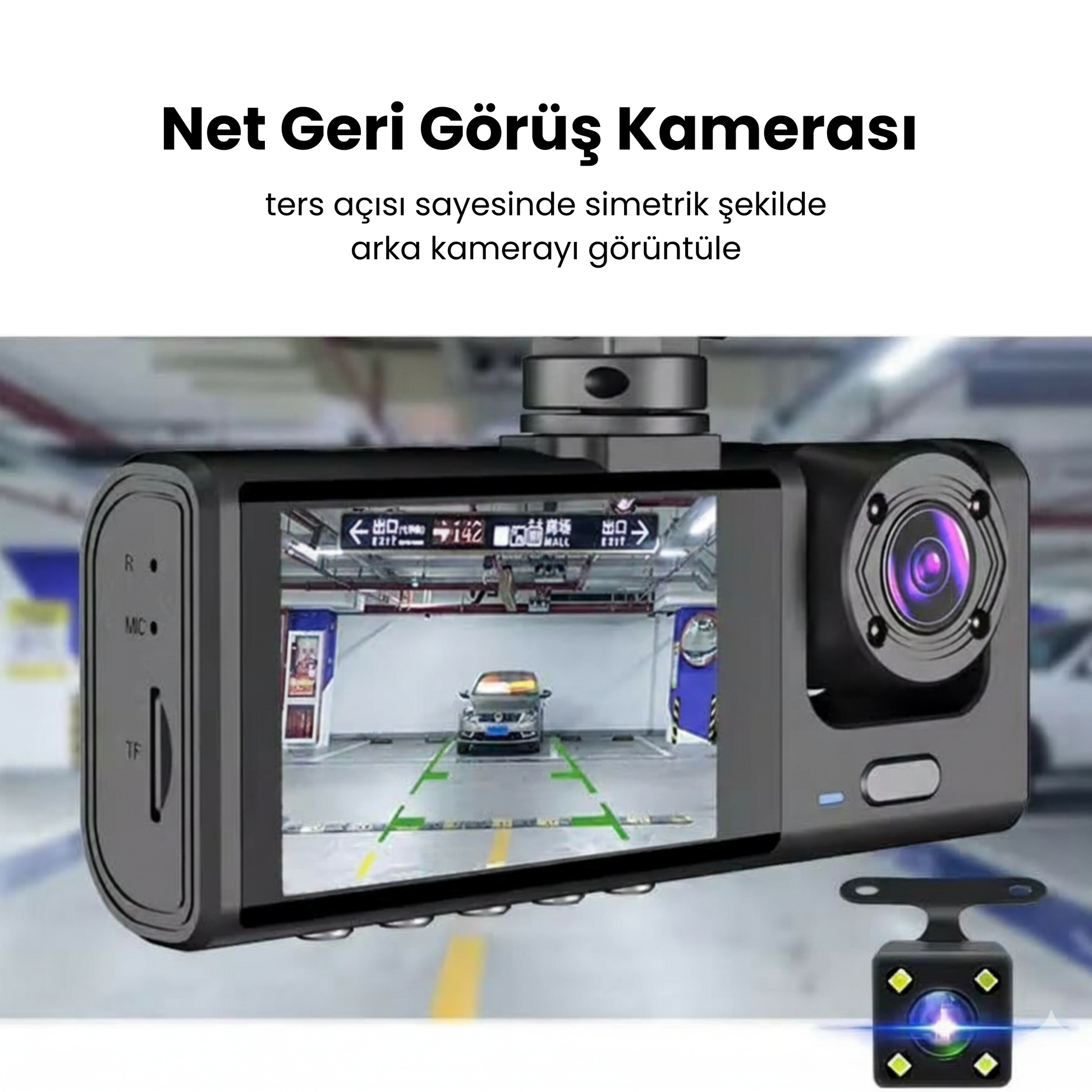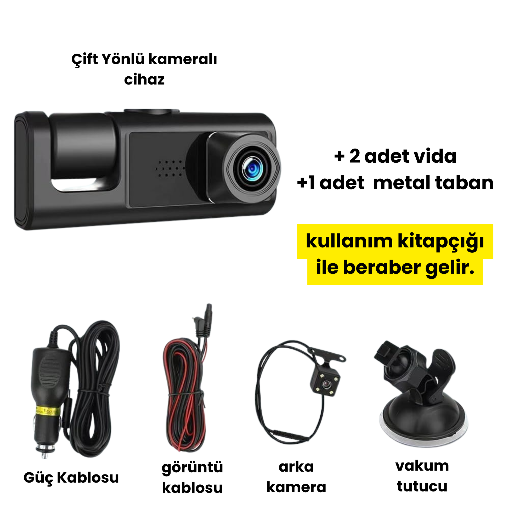 Evet. Paket içeriğinde arka kamera, güç kablosu, görüntü kablosu, vakum tutucu, vida ve metal taban bulunmaktadır.