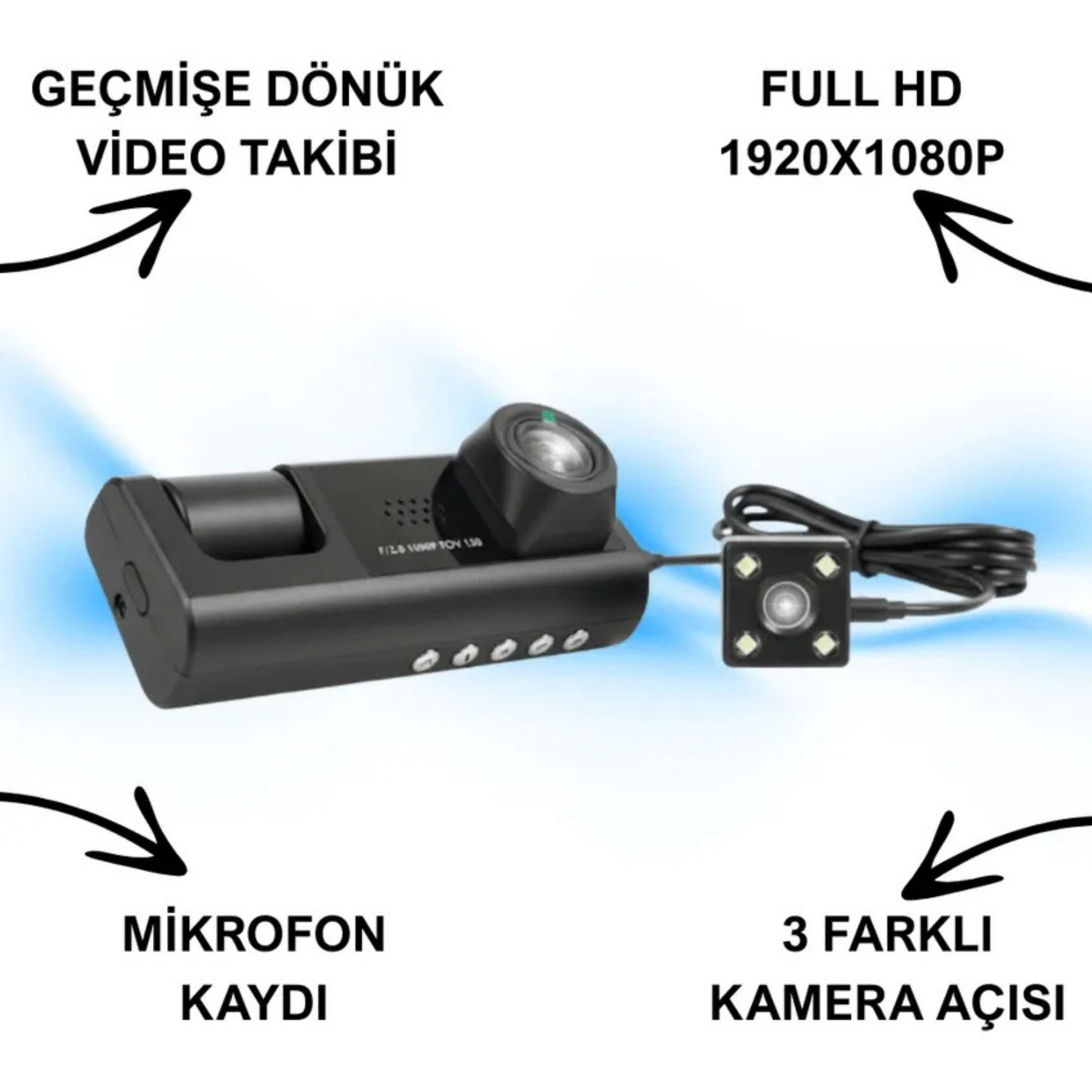 Ön ve arka kamera ile tüm yolculuğunuz kayıt altında.