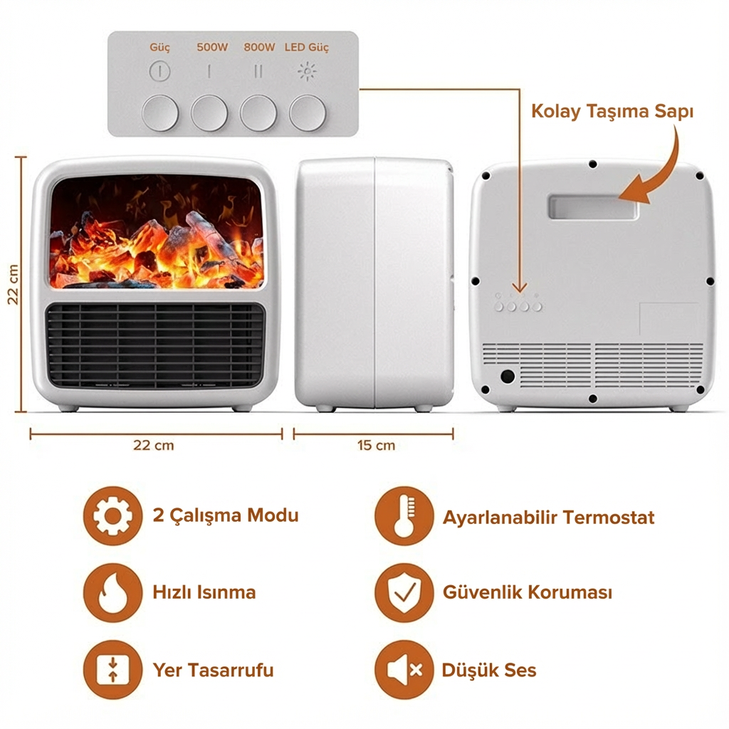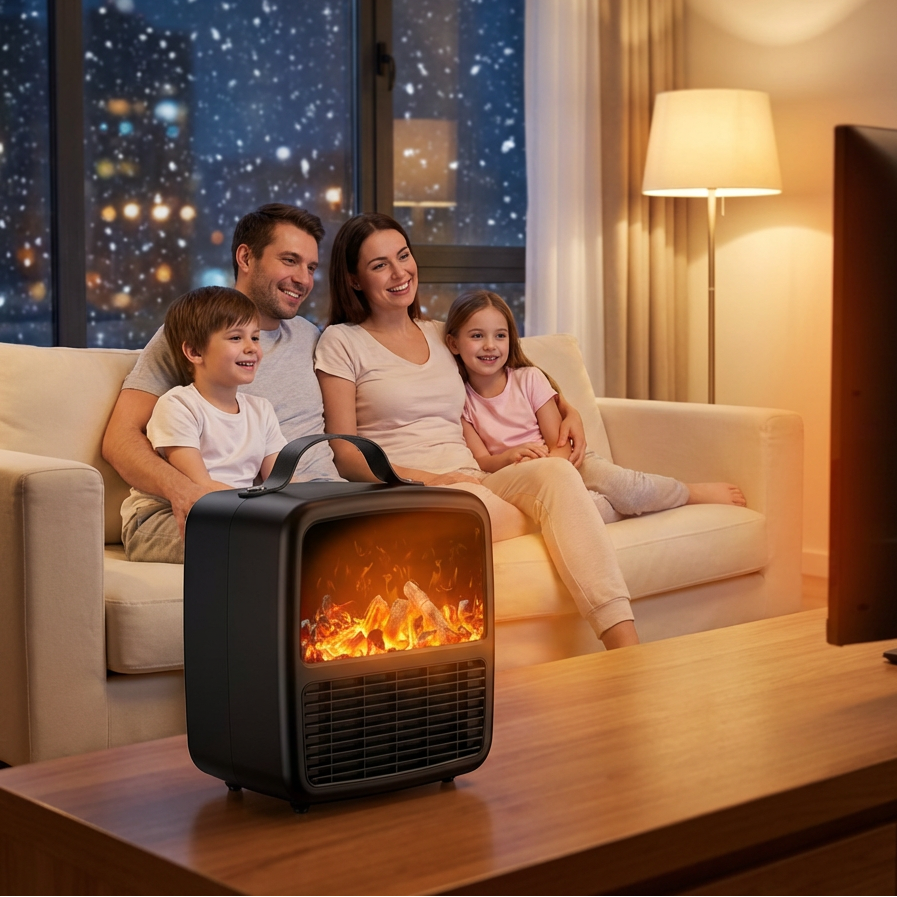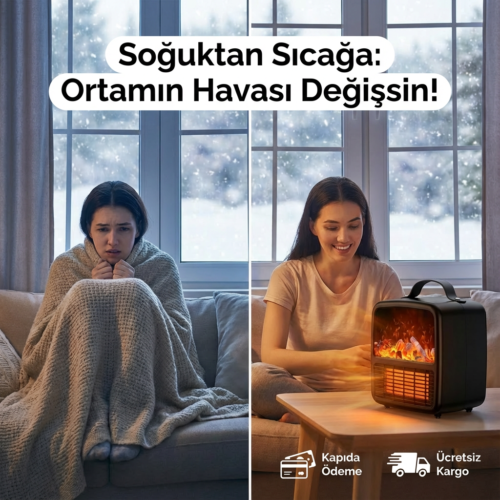 Alev efektli akıllı mini ısıtıcıyla anında sıcaklık ve konfor.
