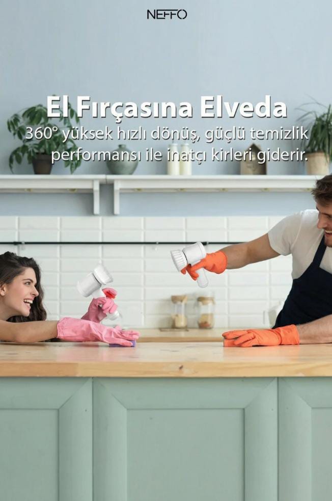 Şarjlı Çok Amaçlı Döner Temizlik Fırçası 5 Başlıklı