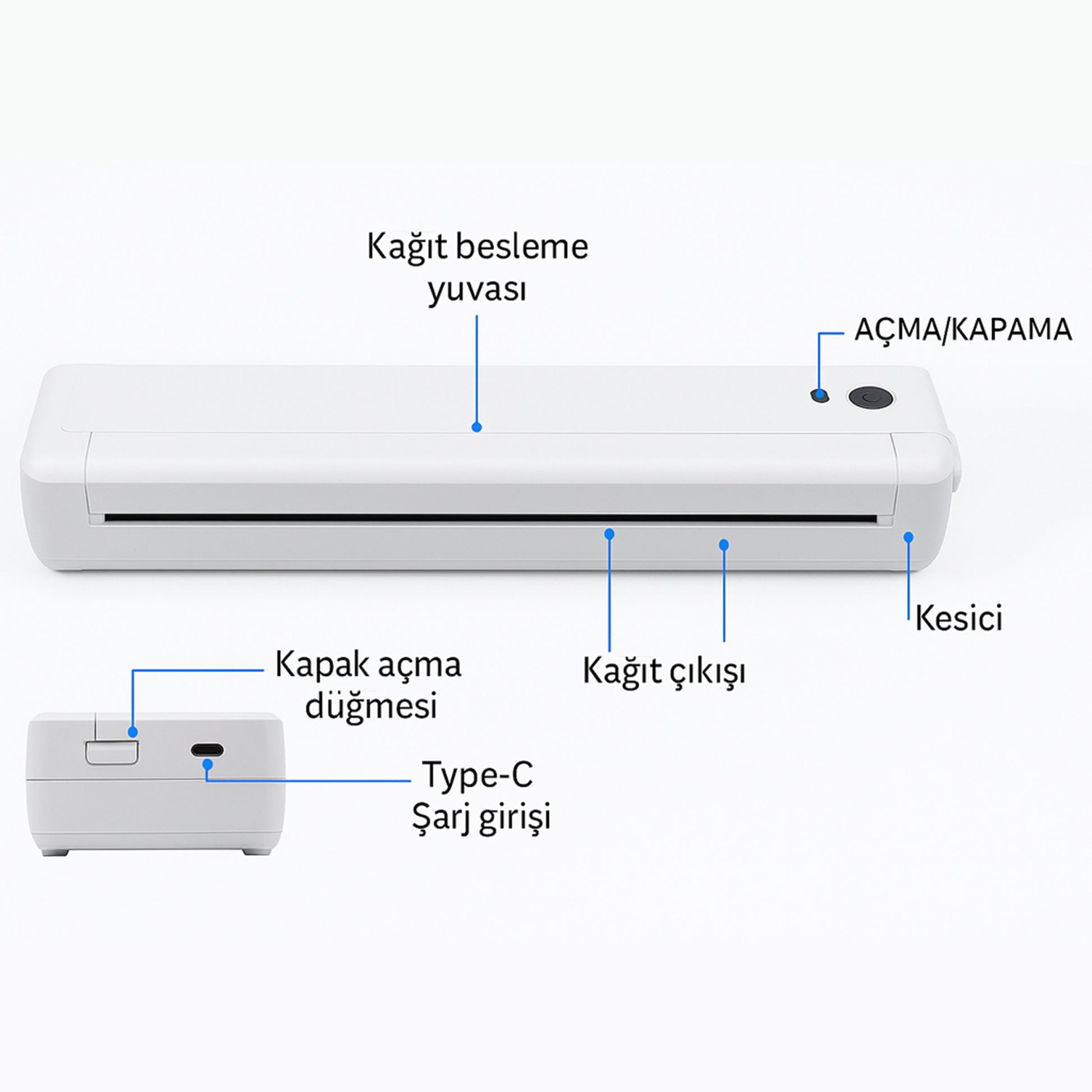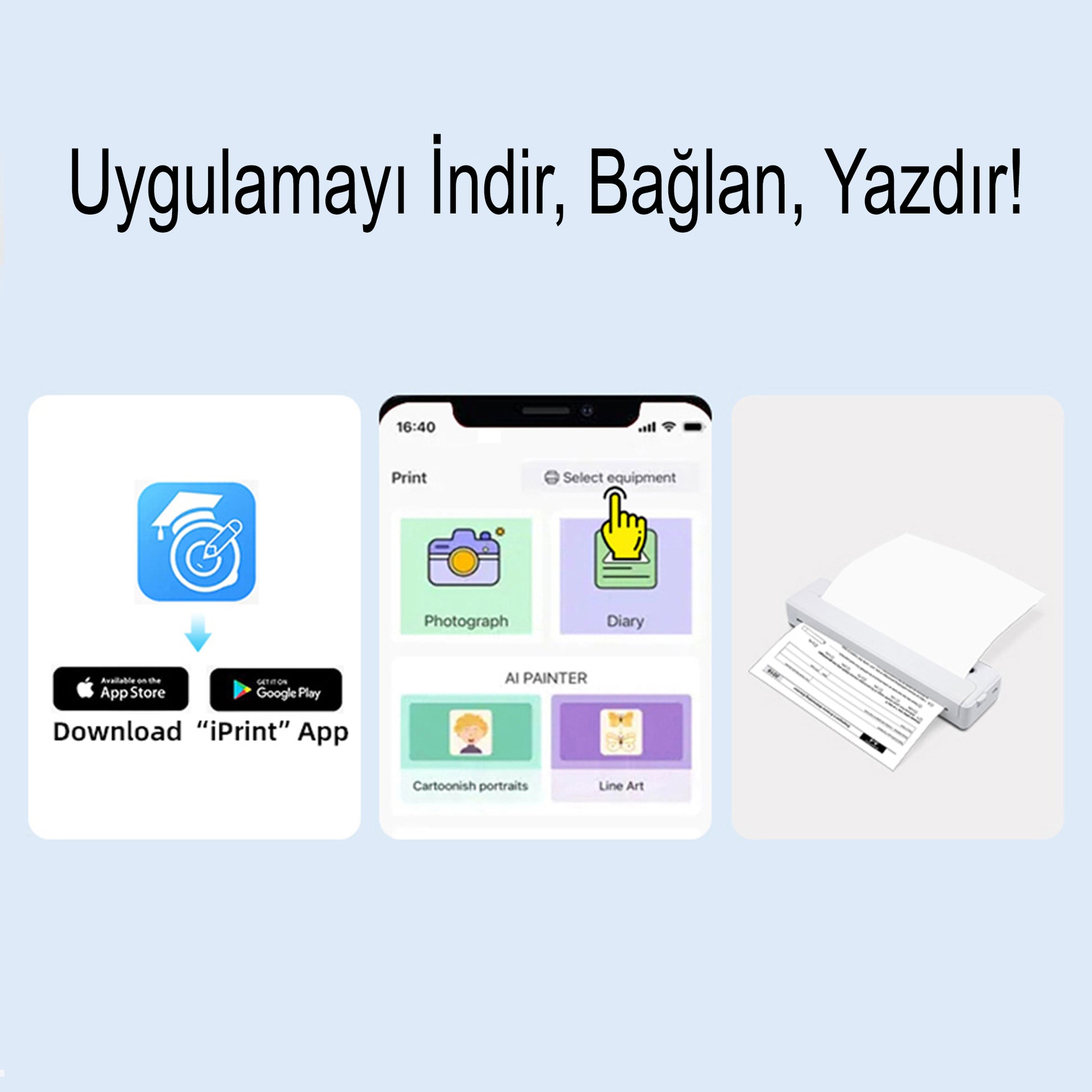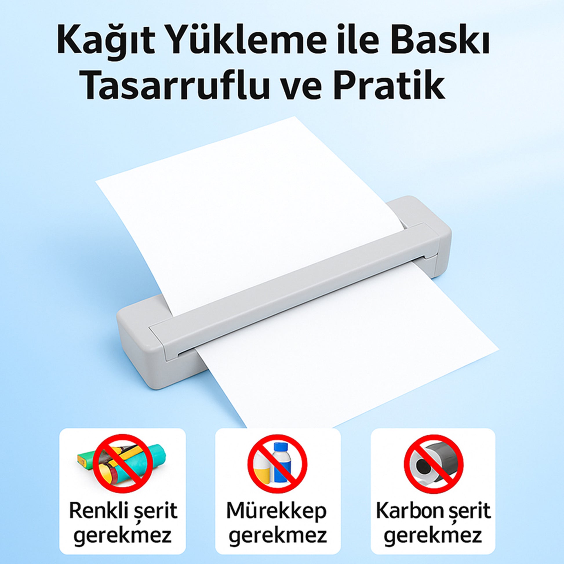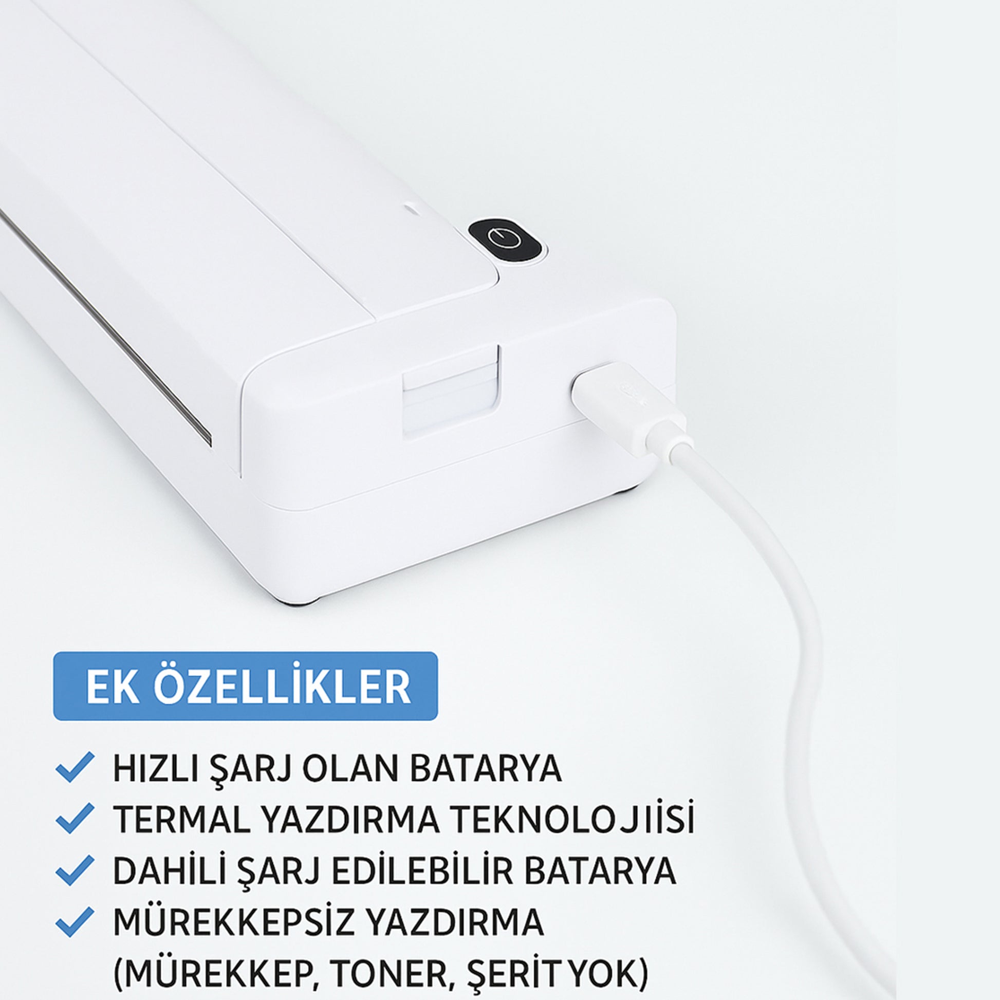 🖨️ Termal baskı teknolojisi ile çalışır. Termal Kağıt kullanılır ! Mürekkep, toner ya da kartuş masrafı yok! Hem ekonomik hem zahmetsiz.