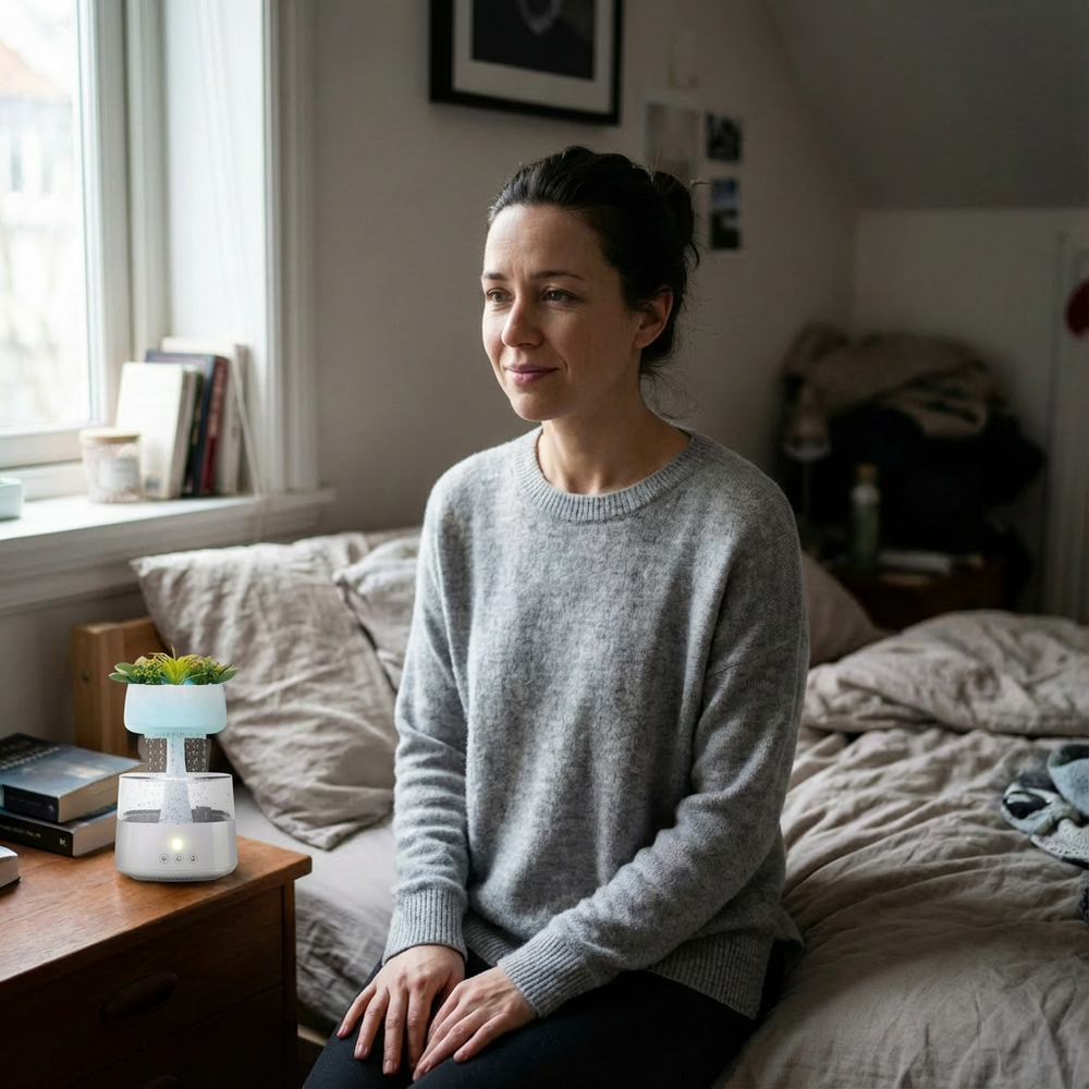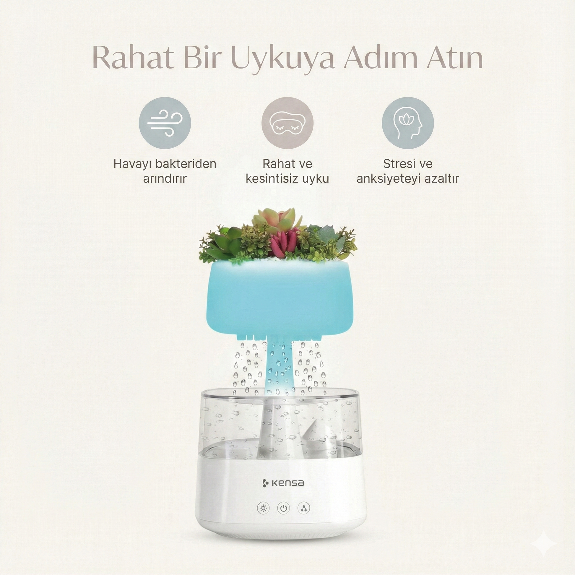 Sadece bir nemlendirici değil, görsel bir terapi. Sakinleştirici yağmur damlası efektiyle günün stresinden arının.